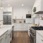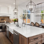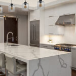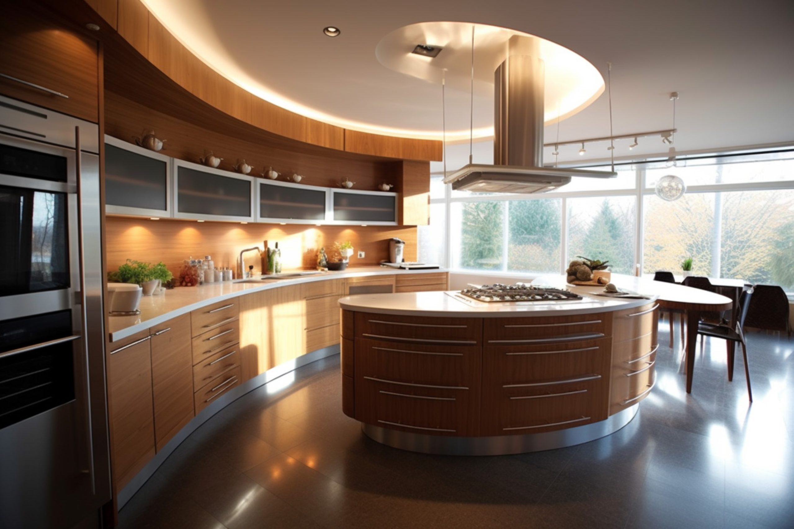 - Modern elegance in domestic kitchen: stainless steel, marble, and hardwood generated by artificial intelligence